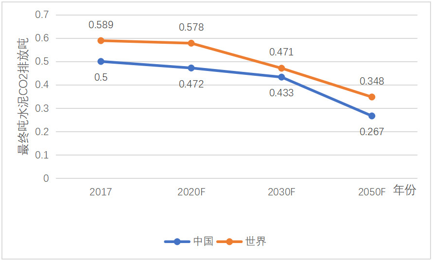 2030年和2050年,世界水泥工業(yè)噸水泥二氧化碳排放量,將分別為0.471噸,和,0.348噸,2050年比2017年減少40.9%;中國則分別為0.433噸和0.267噸,相應(yīng)地減少46.7%??梢钥闯?,2050年,中國的這項指標(biāo),比世界均值先進(jìn)不少,主要是得益于CCS技術(shù)在中國的發(fā)展應(yīng)用較廣。