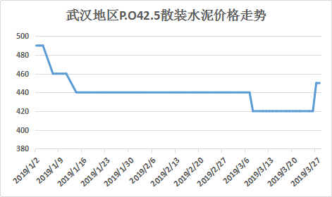 由圖中可以看出,進入2019年武漢地區(qū)水泥價格累計下調(diào)3輪,累計幅度為60-70元/噸。
