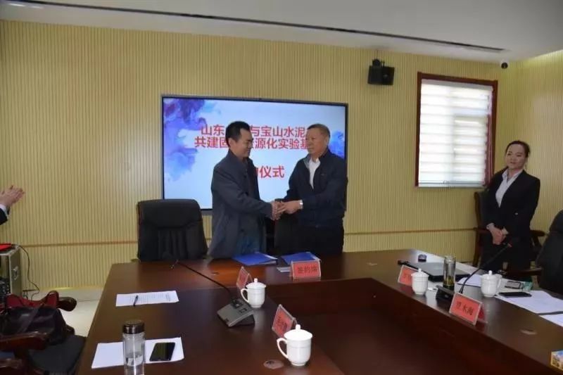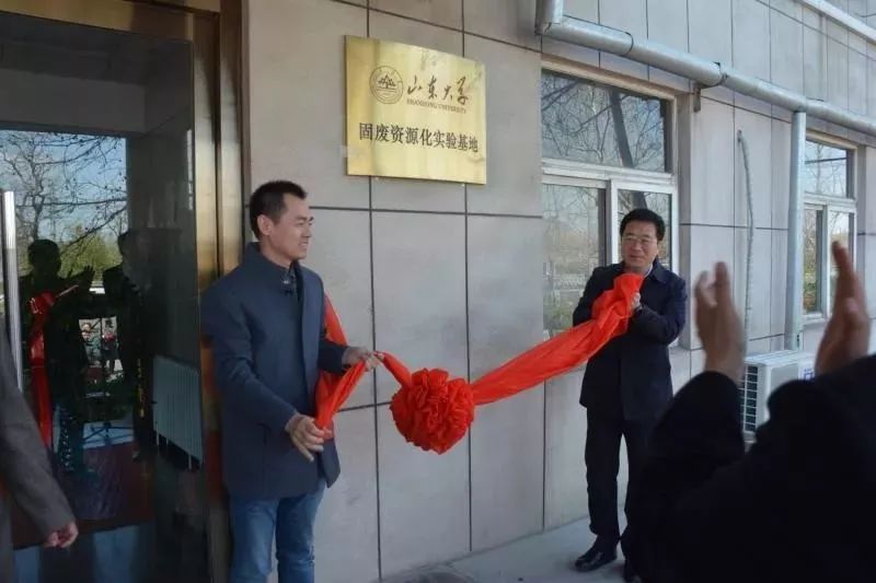 王文龍教授和趙軍區(qū)長為山東大學(xué)與寶山水泥共建固廢資源化實驗基地揭牌