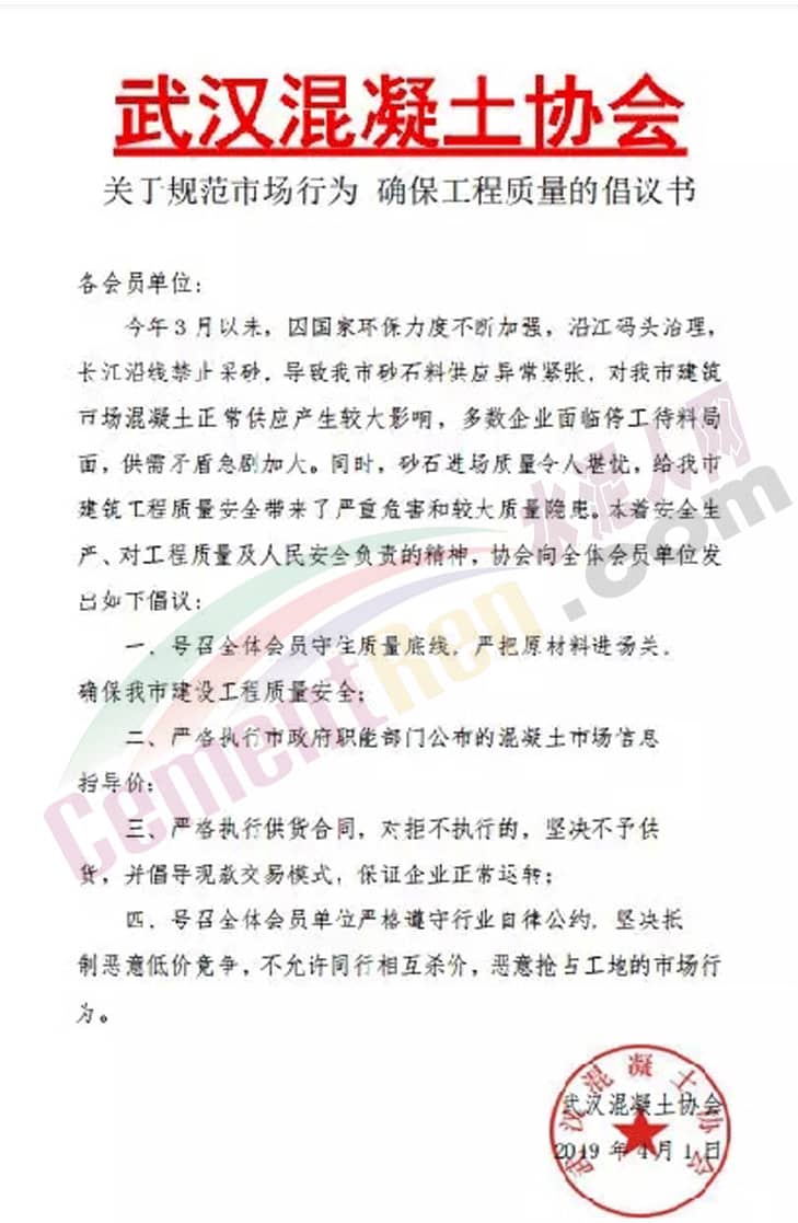 今年開年后,特別是3月以來湖北省武漢市進入工程建設(shè)高峰期,因國家環(huán)保力度不斷加強,沿江碼頭治理,長江沿線禁止采砂,導(dǎo)致湖北武漢市砂石料供應(yīng)異常緊張,對武漢市建筑市場混凝土正常供應(yīng)產(chǎn)生較大影響,多數(shù)企業(yè)面臨停工待料局面,供需矛盾急劇加大。