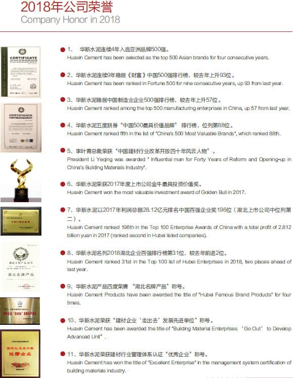 2018年,華新水泥積極完善內(nèi)部治理機制,加強風險識別與評估,努力提升公司運營管理能力,實現(xiàn)公司最佳經(jīng)營業(yè)績。