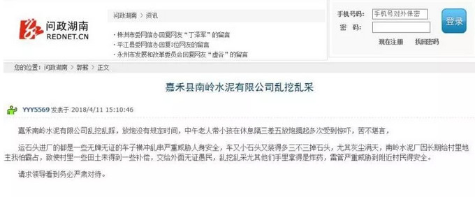 2018年4月11日又有網(wǎng)友在《問(wèn)政湖南》網(wǎng)頁(yè)里發(fā)帖稱(chēng):