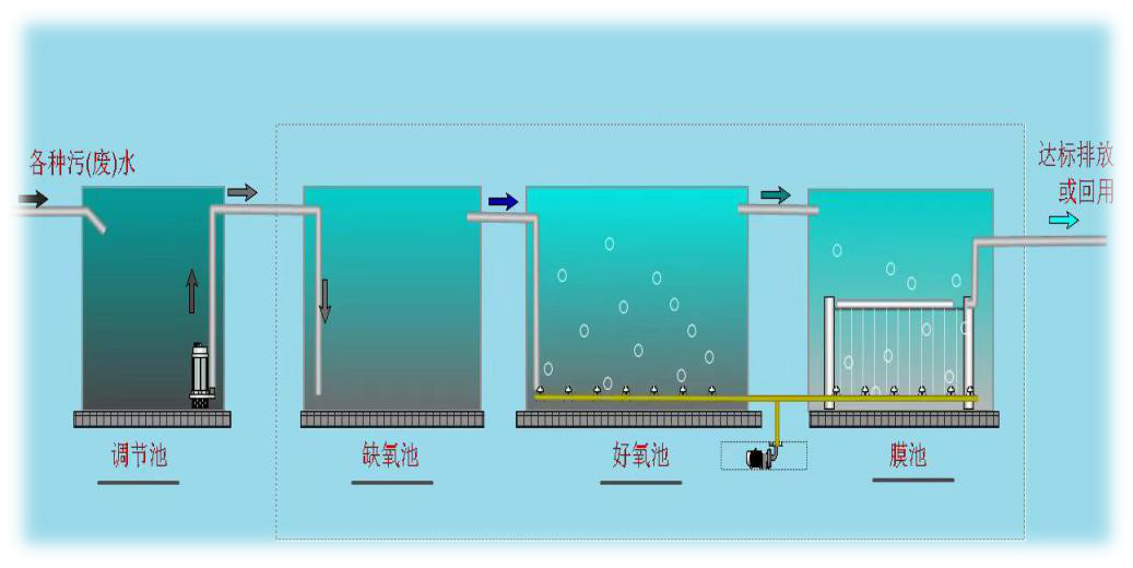 “集裝箱”的研發(fā)主要針對城鎮(zhèn)鄉(xiāng)村、住宅小區(qū)、醫(yī)院、食品加工、屠宰廢水等,因此在工藝選擇上,通常采用A2O(A/O)+MBR工藝,A2/O的智能化集成式污(廢)水處理設備(ZIWT)可實現(xiàn)同步脫氮除磷。