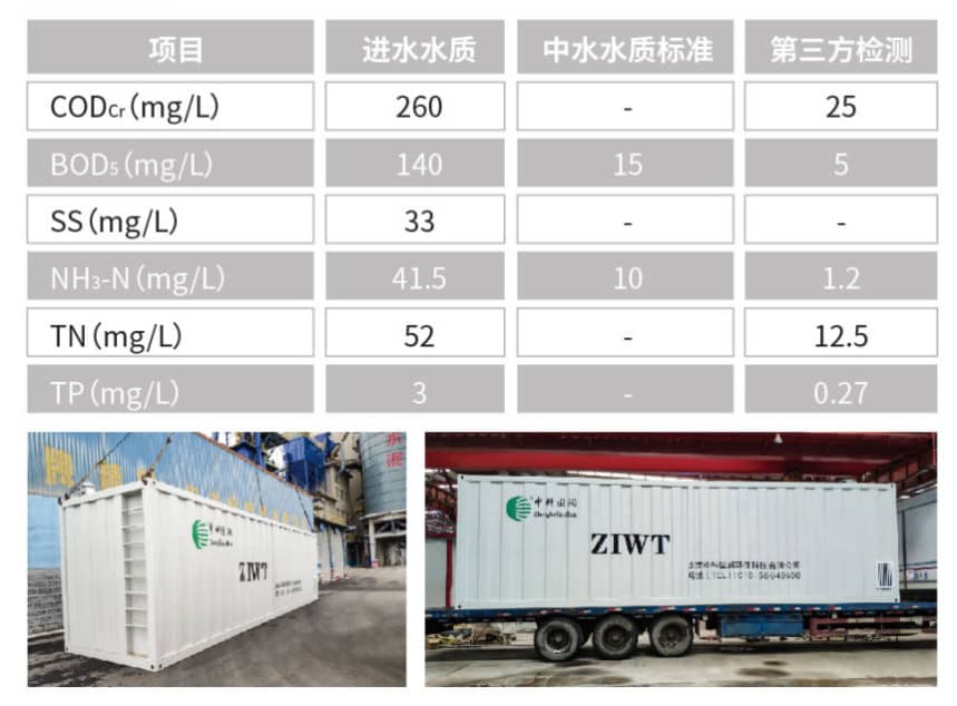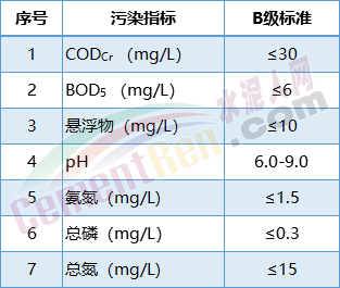通常通過A2/O(A/O)+MBR工藝,生活污水經“集裝箱”后可達到北京市地方標準《水污染物綜合排放標準》(DB11/307-2013)中B級排放標準,見出水水質表。