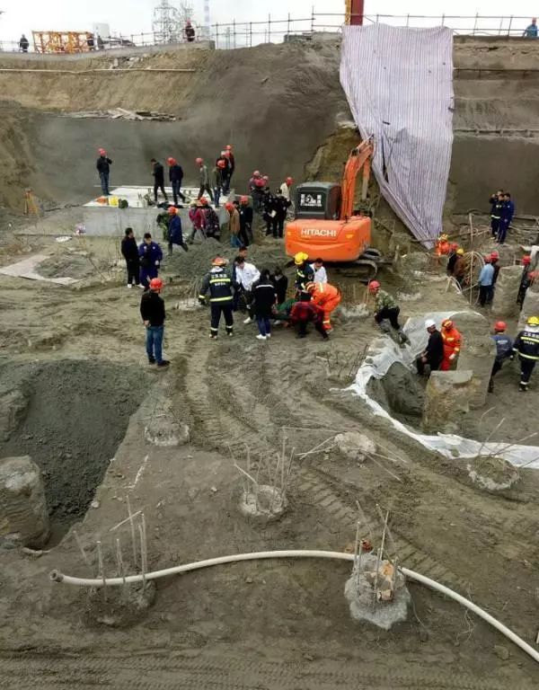 工地現(xiàn)場是處于地下施工環(huán)節(jié),已有混泥土樁基豎起來。坍塌事故發(fā)生后,多名身穿制服的工作人員在相關人員的指揮下,將受傷人員抬出來。
