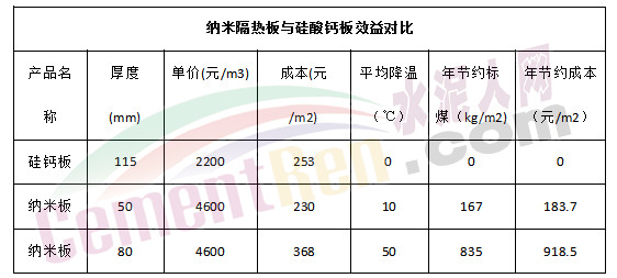一、降低外殼溫度,節(jié)約煤耗。根據(jù)傳熱公式計算,窯爐外殼平均溫度每降低1℃,每平方米少散失熱量194944Kcal(外殼溫度150℃時),折合標(biāo)準(zhǔn)煤27.85公斤,按三次風(fēng)管600平方米使用艾斯特納米板(價值約17萬),平均降溫46℃計算,則每年節(jié)約標(biāo)準(zhǔn)煤27.85*46*600/1000=768噸,價值約85萬元。直接經(jīng)濟(jì)效益非常明顯。