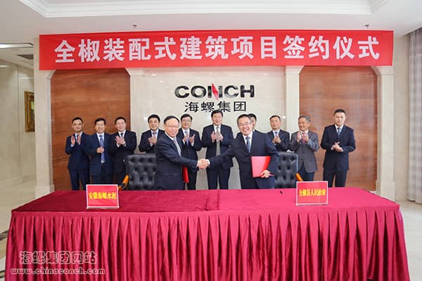 5月24日,海螺水泥與全椒縣人民政府在海螺集團(tuán)總部簽署了裝配式建筑項(xiàng)目合作協(xié)議。海螺集團(tuán)黨委書記、董事長高登榜,集團(tuán)公司副總經(jīng)理、海螺水泥副董事長王建超,海螺水泥總經(jīng)理吳斌、副總經(jīng)理柯秋璧,全椒縣縣委書記朱大綱、縣長楊光、副縣長闞緒瑞等出席并見證簽約儀式。吳斌、楊光代表雙方簽署協(xié)議。