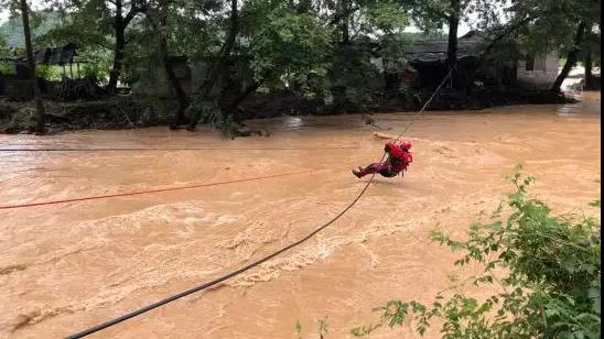 江西省全南縣大吉山鎮(zhèn)遭遇洪災(zāi),群眾被困,消防人員涉水救援。
