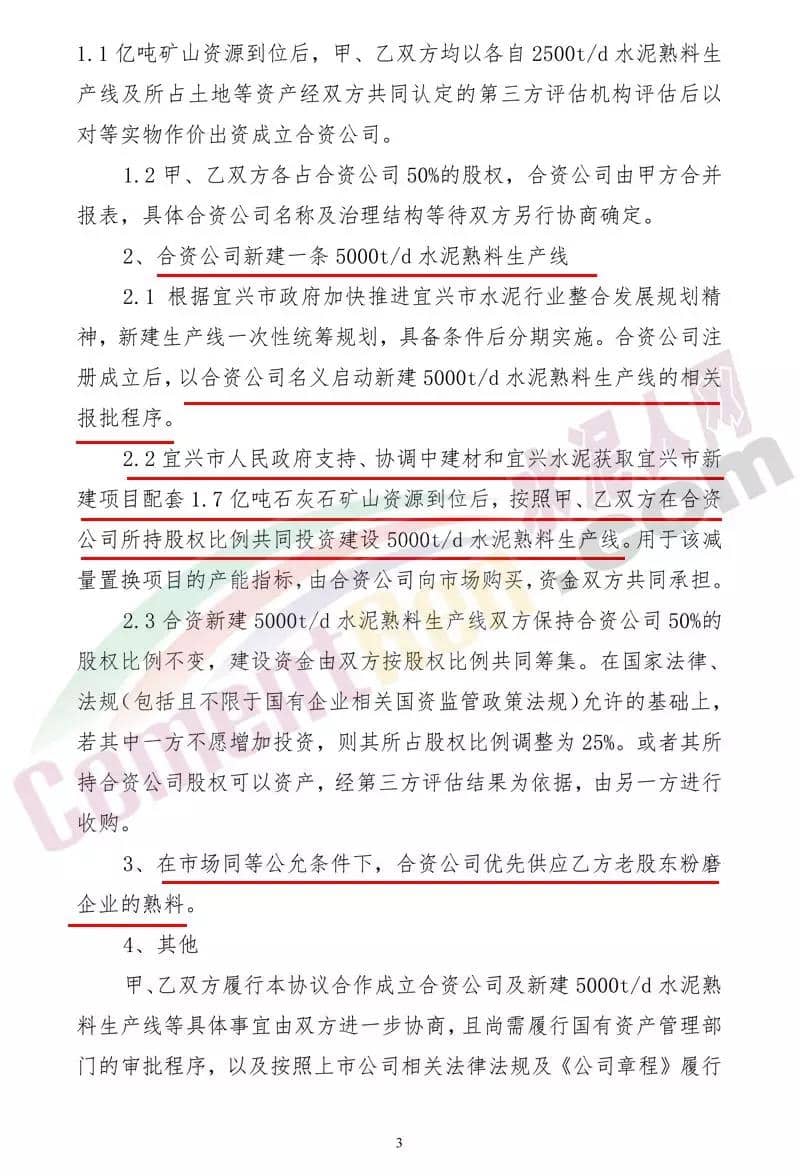 甲、乙雙方履行本協(xié)議合作成立合資公司及新建 5000t/d 水泥熟料生產(chǎn)線等具體事宜由雙方進(jìn)一步協(xié)商,且尚需履行國(guó)有資產(chǎn)管理部門(mén)的審批程序,以及按照上市公司相關(guān)法律法規(guī)及《公司章程》履行相應(yīng)的決策和審批程序,審批后雙方另行簽訂具體協(xié)議生效實(shí)施。公告原文如下: