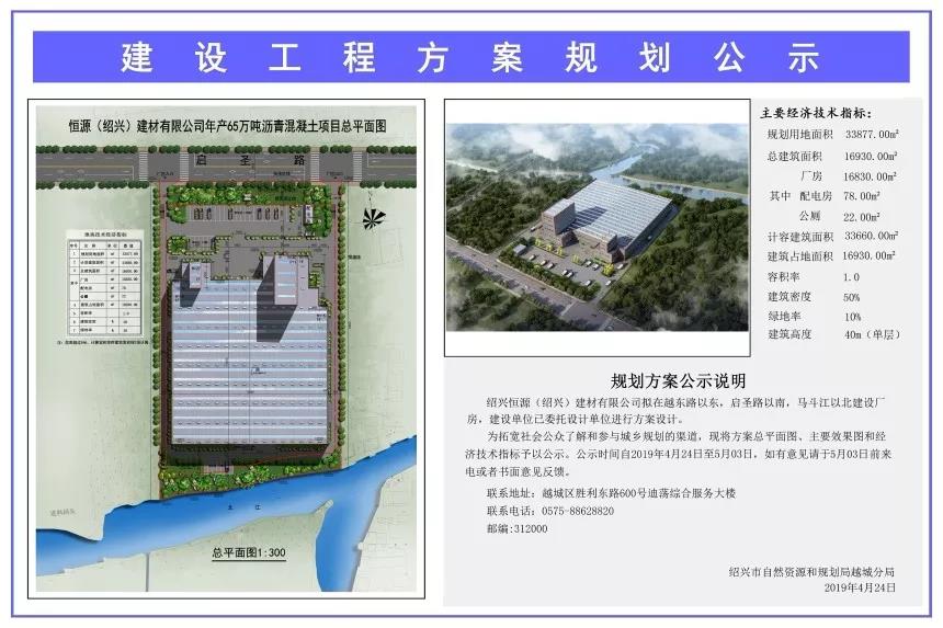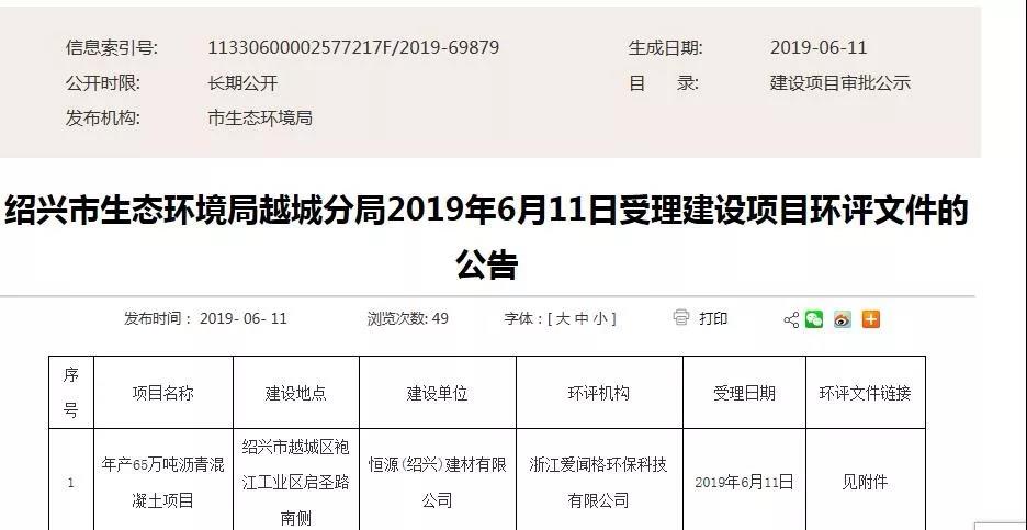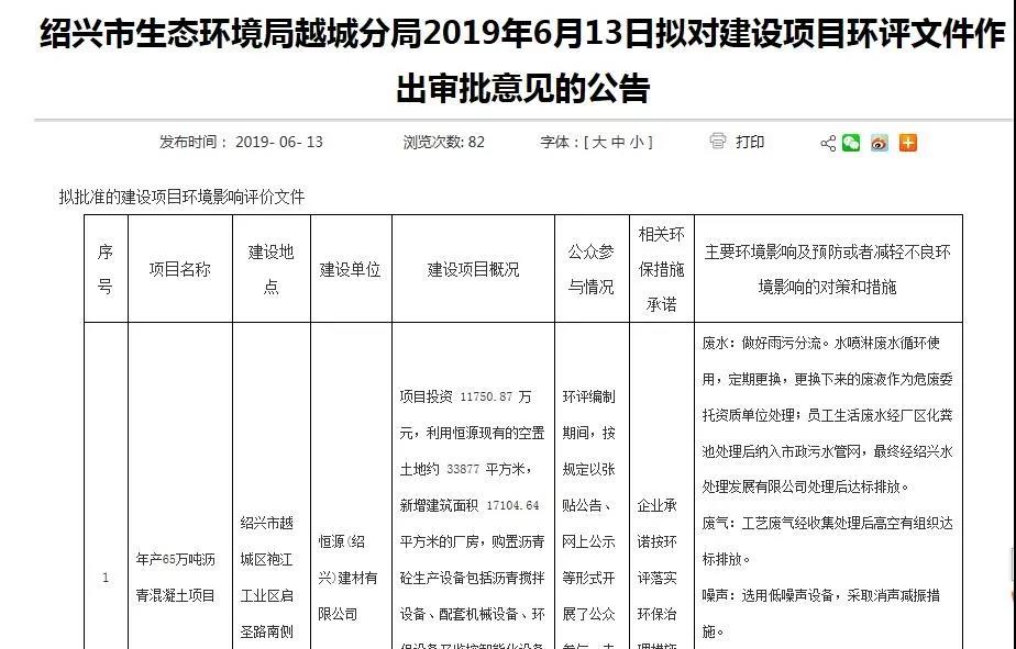 而在此前一天的6月19日深夜,紹興日報社旗下“掌上紹興”發(fā)布《關于恒源(紹興)建材有限公司年產(chǎn)65萬噸瀝青混凝土項目的情況說明》,該說明落款為越城區(qū)人民政府、紹興市經(jīng)信局、紹興市生態(tài)環(huán)境局、紹興市自然資源和規(guī)劃局。