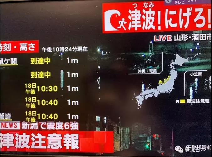 據(jù)報(bào)道稱,這次地震是自去年9月,北海道厚真町發(fā)生7級(jí)地震以來(lái),日本國(guó)內(nèi)發(fā)生的最強(qiáng)烈的地震。日本地震發(fā)生之后日本各大電視臺(tái)均取消了預(yù)定節(jié)目的播出,在地震發(fā)生之后5分鐘開(kāi)始,各大電視臺(tái)的屏幕打出了“海嘯!趕快逃命”(津波!にげろ!)的醒目紅字,播音員連續(xù)不斷地呼叫沿海地區(qū)的居民立即逃到高處,不要在海岸邊停留,海嘯不只一次,還可能會(huì)出現(xiàn)二次、三次。這樣的呼叫,持續(xù)了近一個(gè)小時(shí)。