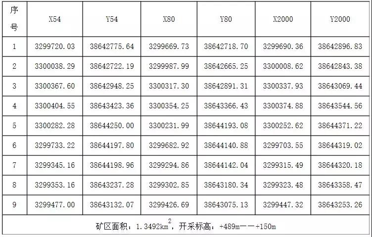 預(yù)劃定礦區(qū)范圍拐點坐標(biāo)