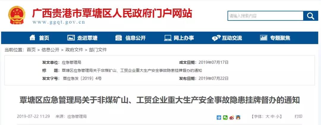 《通知》稱:根據(jù)《貴港市安全生產(chǎn)委員會(huì)辦公室關(guān)于印發(fā)2019年全市重點(diǎn)行業(yè)領(lǐng)域安全生產(chǎn)專項(xiàng)整治方案的通知》(貴安委辦〔2019〕10號(hào))和廣西壯族自治區(qū)應(yīng)急管理廳《關(guān)于進(jìn)一步強(qiáng)化非煤礦山安全監(jiān)管工作的通知》(桂應(yīng)急發(fā) 〔2019〕16號(hào))文件要求,廣西貴港市覃塘區(qū)應(yīng)急管理局聘請廣西工業(yè)建筑設(shè)計(jì)研究院有限公司對(duì)覃塘區(qū)轄區(qū)華潤水泥(貴港)有限公司天堂嶺水泥配料用砂巖礦等8家企業(yè)進(jìn)行安全生產(chǎn)隱患排查,發(fā)現(xiàn)8家企業(yè)共存在53項(xiàng)重大生產(chǎn)安全事故隱患,并下達(dá)了整改通知書,責(zé)令限期整改。