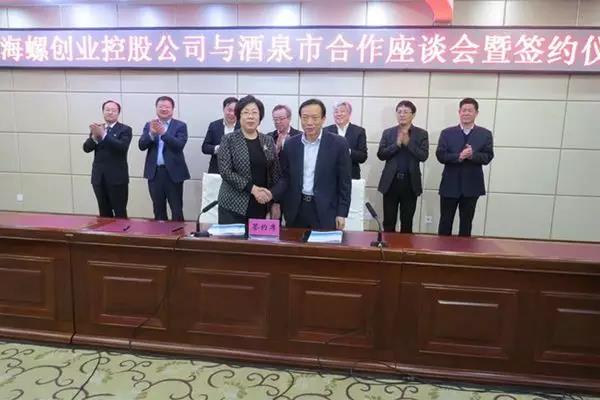 海螺創(chuàng)業(yè)總經(jīng)理紀(jì)勤應(yīng)、貴池區(qū)人民政府常務(wù)副區(qū)長唐禮虎和池州海螺總經(jīng)理程如良代表三方簽約。