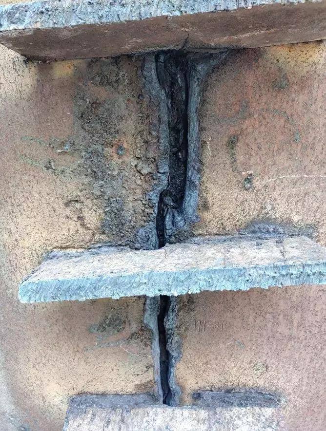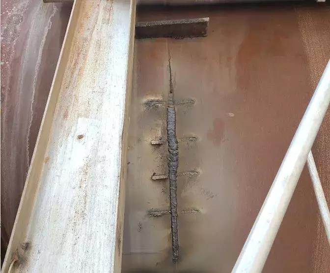 據(jù)反饋消息稱,該水泥廠窯筒體開裂部位位于擋磚圈位置,開裂距離長約1米左右,開裂位置有一定的腐蝕且磨損嚴重,筒體平均厚度僅為10mm,最薄處不足5mm,如不進行緊急修復,或存在窯斷裂風險,其后果將不堪設想。
