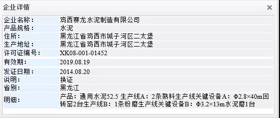 據(jù)業(yè)內(nèi)人士介紹,用于出讓的兩條熟料生產(chǎn)線在2016年已關(guān)停拆除,近期黑龍江工信廳公布的生產(chǎn)線清單中也未提及這兩條熟料生產(chǎn)線。市場(chǎng)監(jiān)管總局生產(chǎn)許可辦公室數(shù)據(jù)顯示生產(chǎn)地址位于黑龍江雞西市城子河區(qū)二太堡的兩條熟料生產(chǎn)線生產(chǎn)許可證發(fā)證日期為2014年8月20日,有效期至2019年8月19日。