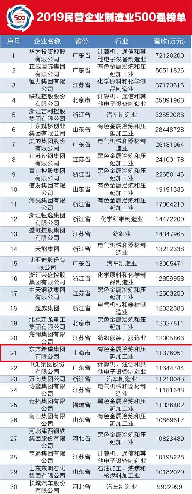 本次入選“2019中國民營企業(yè)500強”、“2019中國民營企業(yè)制造業(yè)500強”,是東方希望集團堅定走高質(zhì)量發(fā)展道路,積極踐行創(chuàng)新、協(xié)調(diào)、綠色、開放、共享的新發(fā)展理念、加快轉(zhuǎn)型升級取得的“綠色”成果之一。