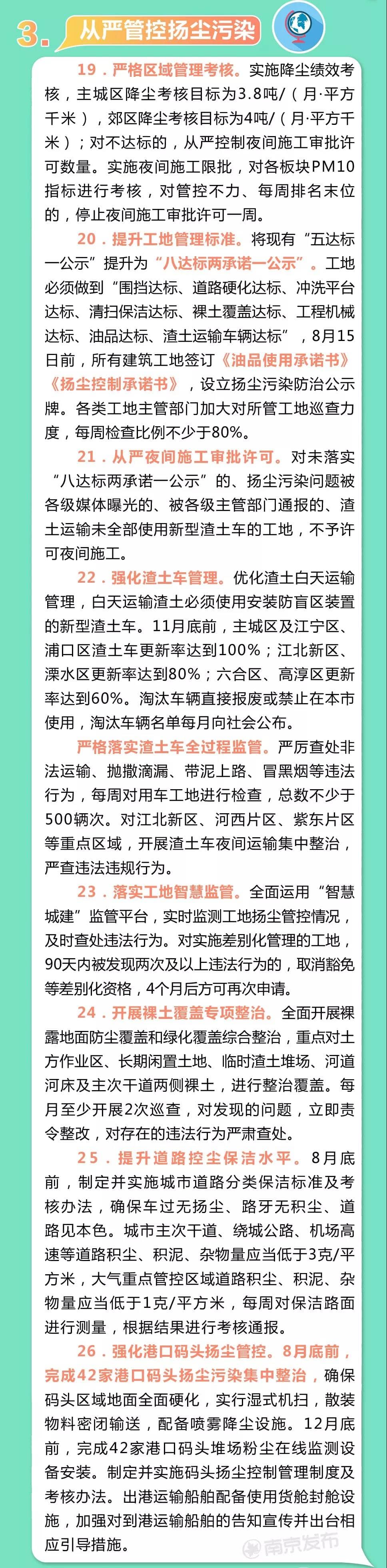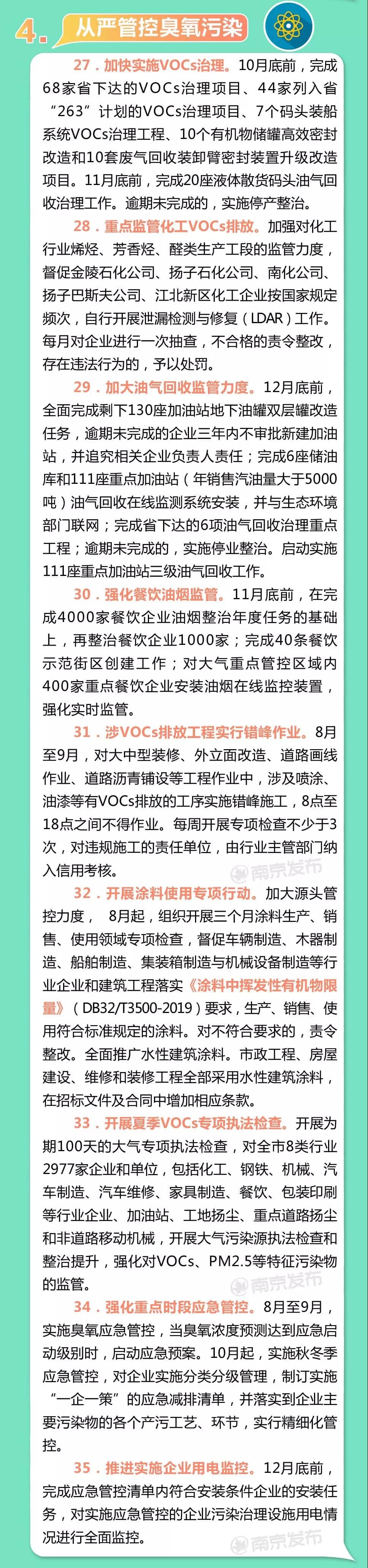 8月9日,南京市出臺《2019年下半年南京市大氣污染防治攻堅措施》堅持“能用盡用、能快則快、能實必實、能嚴盡嚴”的原則,針對工業(yè)污染、車船污染、揚塵污染和臭氧污染4項影響南京空氣質量的主要污染源 對癥下藥制定了40條從嚴管控措施 。力爭在本年度剩下的月份提升空氣質量讓南京人看到更多藍天。