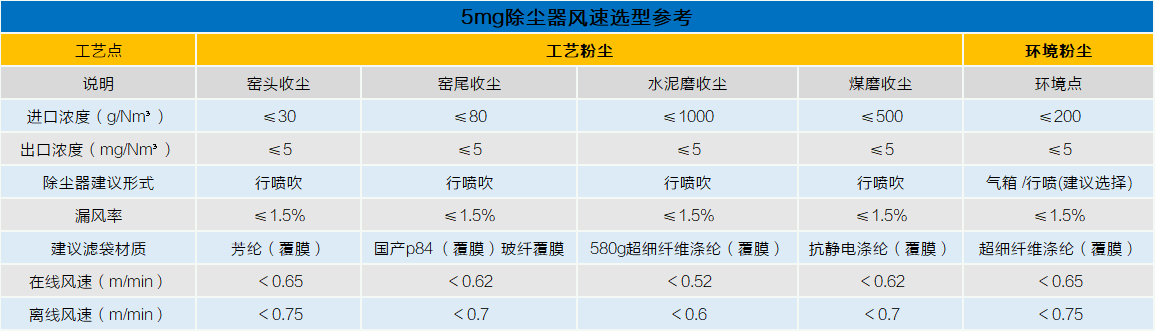 表二 5mg除塵器選型參考
