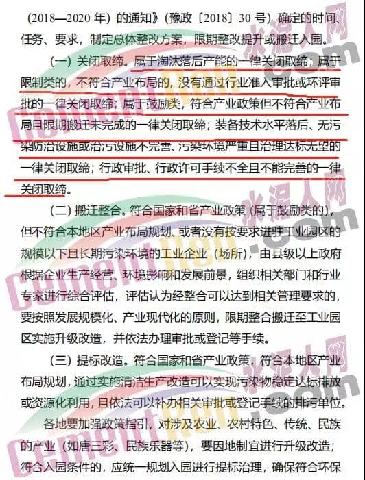 (三)提標(biāo)改造。符合國(guó)家和省產(chǎn)業(yè)政策,符合本地區(qū)產(chǎn)業(yè) 布局規(guī)劃,通過(guò)實(shí)施清潔生產(chǎn)改造可以實(shí)現(xiàn)污染物穩(wěn)定達(dá)標(biāo)排放 或資源化利用,且依法可以補(bǔ)辦相關(guān)審批或登記手續(xù)的排污單位。各地要加強(qiáng)政策指引,對(duì)涉及農(nóng)業(yè)、農(nóng)村特色、傳統(tǒng)、民族 的產(chǎn)業(yè)(如唐三彩、民族樂(lè)器等),要因地制宜進(jìn)行升級(jí)改造;符合入園條件的,應(yīng)統(tǒng)一規(guī)劃入園進(jìn)行提標(biāo)治理,確保符合環(huán)保標(biāo)準(zhǔn)。