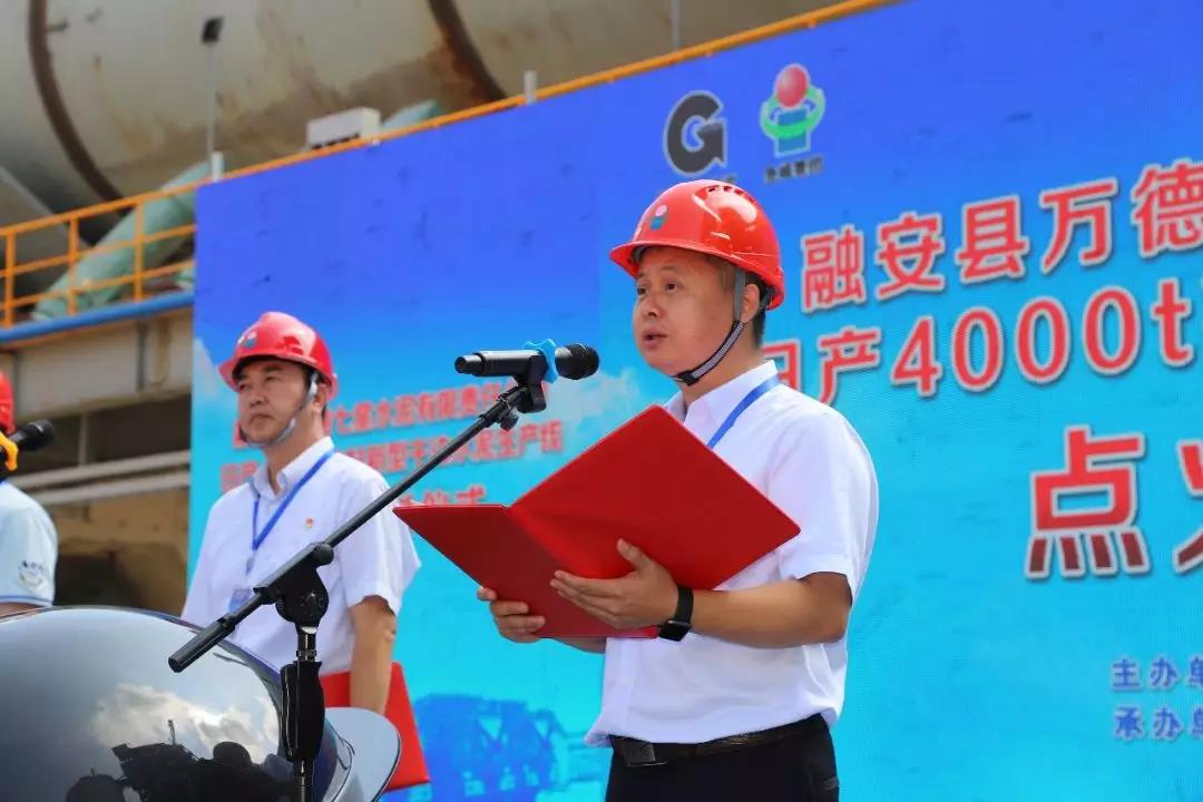 魚峰集團(tuán)董事長楊義在致辭中表示,隨著項(xiàng)目的建成,融安萬德七星水泥有限公司日產(chǎn)4000t/d生產(chǎn)線將成為柳州市最大的單線水泥生產(chǎn)線,熟料產(chǎn)量達(dá)到124萬噸,水泥產(chǎn)量達(dá)到170萬噸,砂石骨料100萬噸,預(yù)計(jì)增加產(chǎn)值6.68億元。利稅超過8000萬元,增加勞動就業(yè)220人,帶動融安周邊農(nóng)村產(chǎn)業(yè)鏈就業(yè)300人以上,是一個既有顯著經(jīng)濟(jì)效益,又有顯著社會效益的好項(xiàng)目。項(xiàng)目的點(diǎn)火投料,既是一個里程碑,更是新征程的起點(diǎn),希望融安公司繼續(xù)發(fā)揚(yáng)項(xiàng)目建設(shè)期的拼搏精神,保持干勁不放松,為當(dāng)?shù)毓I(yè)經(jīng)濟(jì)實(shí)現(xiàn)跨越發(fā)展、為融安縣建設(shè)成為柳州市域次中心城市,為提前完成集團(tuán)公司十三五計(jì)劃、早日實(shí)現(xiàn)“百億魚峰”做出新的更大的貢獻(xiàn)。