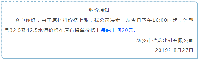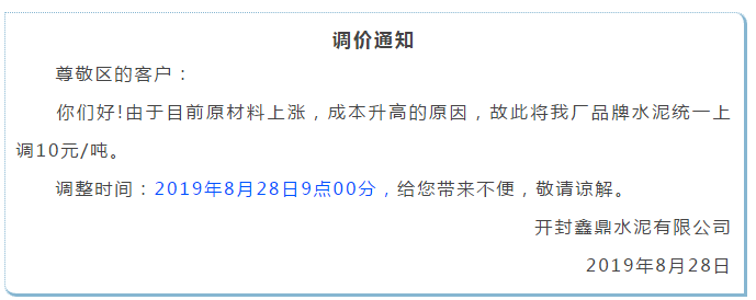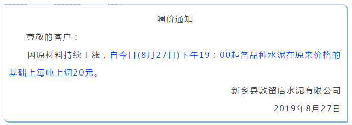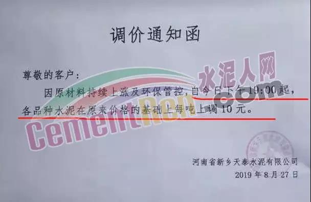 河南開封某水泥企業(yè)負(fù)責(zé)人表示:目前開封市所有的水泥熟料生產(chǎn)線自8月27日到9月17日全部停產(chǎn),粉磨站目前還沒有接到停產(chǎn)通知,鑒于熟料停產(chǎn),水泥價格從28日開始也上調(diào)10元/噸。