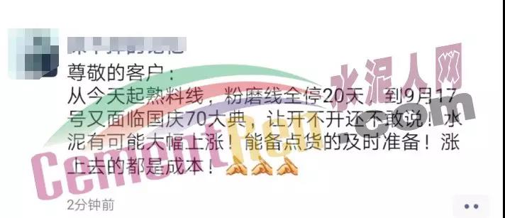 據(jù)部分水泥企業(yè)負(fù)責(zé)人介紹,此次停產(chǎn)并沒有相關(guān)的文件或者是書面通知,只是通過口頭傳達(dá)。