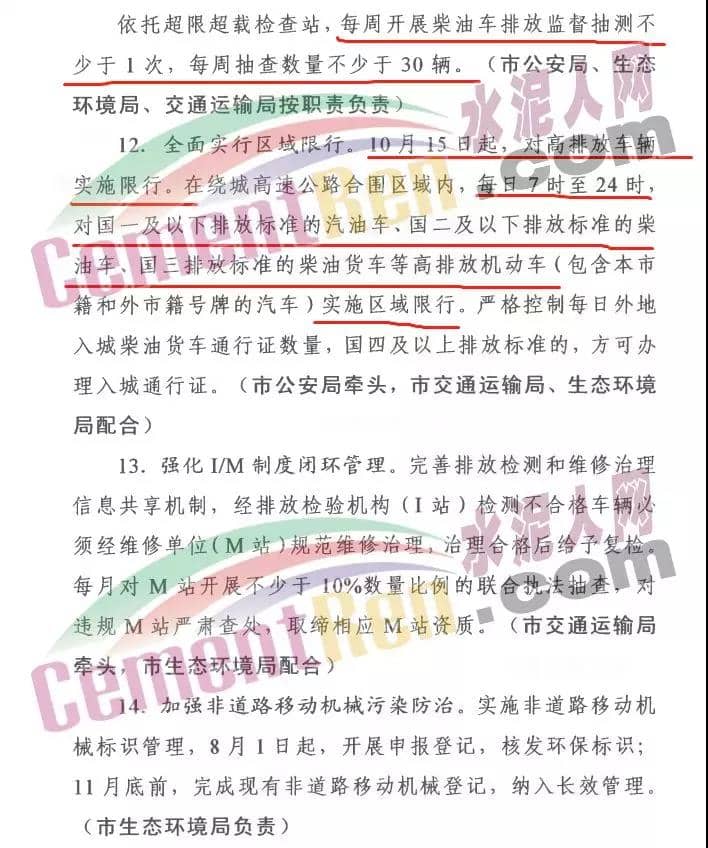 實(shí)施水泥行業(yè)減量錯(cuò)峰生產(chǎn)。對(duì)水泥行業(yè)實(shí)行負(fù)面清單管理,不得新增產(chǎn)能,對(duì)現(xiàn)有水泥產(chǎn)能進(jìn)行壓減退出。8月15日起,采取綜合措施,倒逼部分水泥企業(yè)退出;對(duì)暫時(shí)保留企業(yè),從9月份起實(shí)施錯(cuò)峰生產(chǎn),按要求限產(chǎn)50%以上(以用電量核算)或階段性停產(chǎn)。(市工信局牽頭,市發(fā)改委、公安局、規(guī)劃資源局、商務(wù)局配合,棲霞區(qū)、江寧區(qū)、浦口區(qū)、溧水區(qū)、南京經(jīng)開發(fā)區(qū)負(fù)責(zé))
