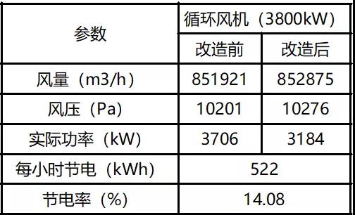 由于循環(huán)風(fēng)機(jī)改造的成功,2018年底,莒縣中聯(lián)果斷選擇將其高溫風(fēng)機(jī)交由上海瑞晨改造,有了前一次的雙方成功磨合經(jīng)驗(yàn),改造升級(jí)工程僅于2019年3月份便安裝完成。在同等工況下對(duì)比,每小時(shí)節(jié)電量達(dá)到300kWh。超出改造技術(shù)協(xié)議要求(技術(shù)協(xié)議要求280kWh),項(xiàng)目于2019年4月順利完成驗(yàn)收。