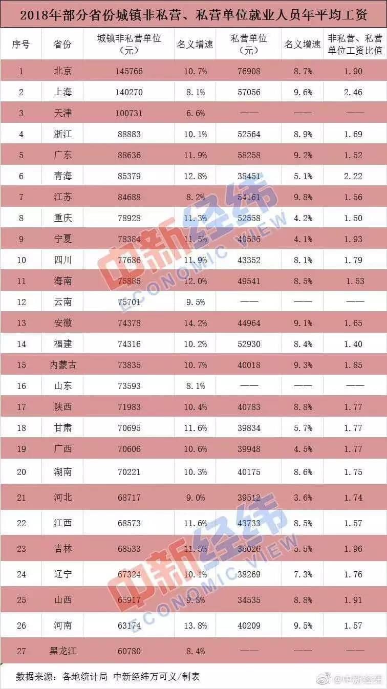 再結(jié)合日前公布的去年部分省份城鎮(zhèn)非私營(yíng)、知識(shí)營(yíng)單位就業(yè)人員年平均工資來看,北京以145766元高居非私營(yíng)企業(yè)榜首,上海140270元,天津100731元排名第二第三,19個(gè)城市的增速在兩位數(shù)以上,安徽省以14.2%排名第一,河南13.8%排名第二。