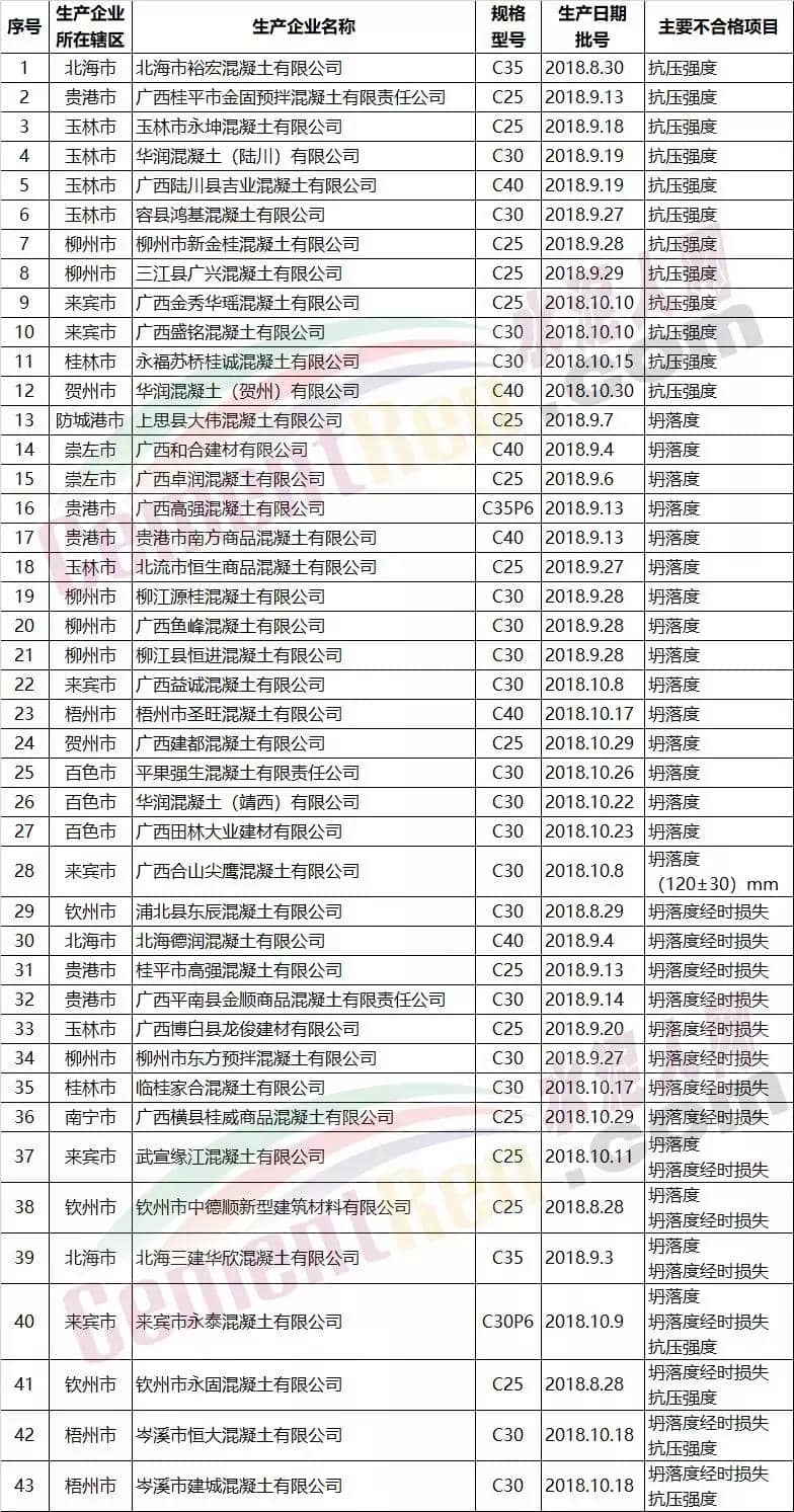 曾因質(zhì)量被通報的部分混凝土企業(yè)名單: