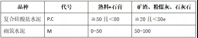 通用硅酸鹽水泥按混合材料的品種和摻量分為硅酸鹽水泥、普通硅酸鹽水泥、礦渣硅酸鹽水泥、火山灰質(zhì)硅酸鹽水泥、粉煤灰硅酸鹽水泥和復(fù)合硅酸鹽水泥。其中復(fù)合硅酸鹽水泥也就是以P.C為代號(hào)的水泥品種其熟料+石膏的組分要求為大于等于50%且小于80%。