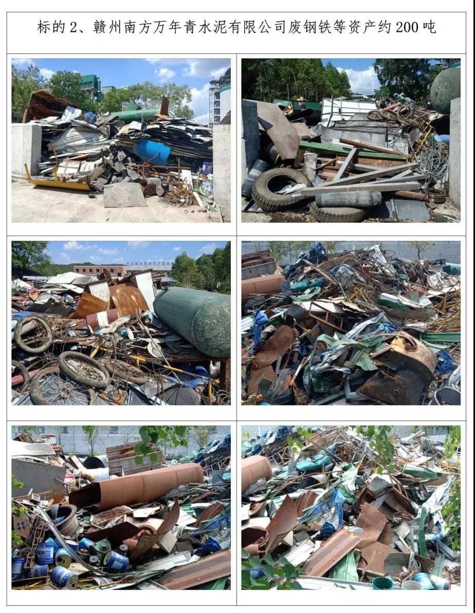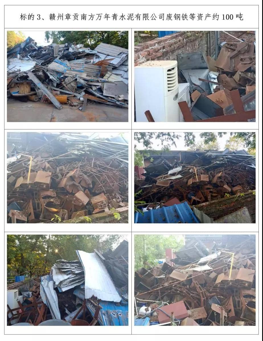 標(biāo)的3:贛州章貢南方萬(wàn)年青水泥有限公司擁有的廢鋼鐵等資產(chǎn)約100噸,起拍價(jià)1700元/噸。