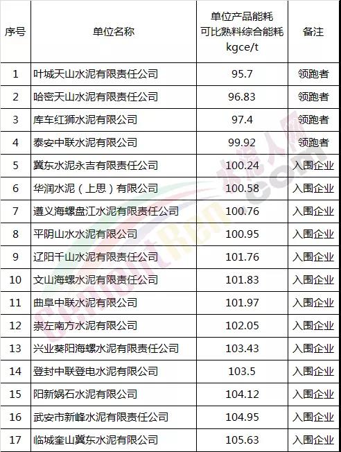 這些水泥企業(yè)的磨房在行業(yè)內(nèi)多被推崇,不僅因其潔凈程度堪比七星級(jí)酒店,其能耗指標(biāo),維護(hù)管理也處于行業(yè)前列。不僅僅是水泥磨房,水泥熟料生產(chǎn)方面,區(qū)域龍頭企業(yè)在能耗指標(biāo)方面也是嘆為觀止。工信部此前評(píng)選的水泥行業(yè)能效“領(lǐng)跑者”中包括華潤水泥、中聯(lián)水泥、南方水泥、海螺水泥、紅獅水泥、天山水泥、冀東水泥等十七家水泥企業(yè)。從相關(guān)企業(yè)的單位產(chǎn)品能耗可比熟料綜合能耗來看,能耗領(lǐng)跑者單位均在100kgce/t以下。入圍企業(yè)也都控制在100kgce/t左右。