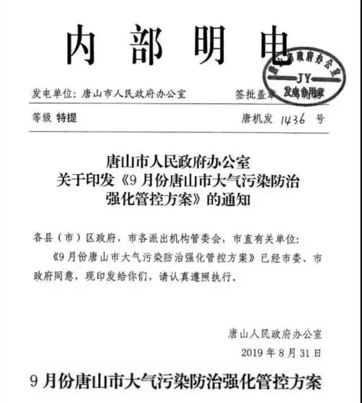 河北唐山市從今年2月份開始月月停限產,近期又發(fā)布了9月強化管控方案。對于未落實停限產措施的企業(yè),當場切斷電源,摘除電表,對負責人連夜實施行政拘留。