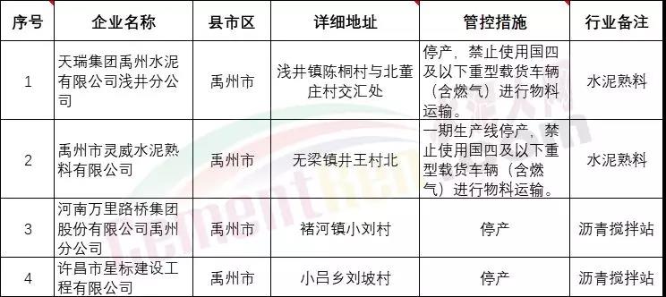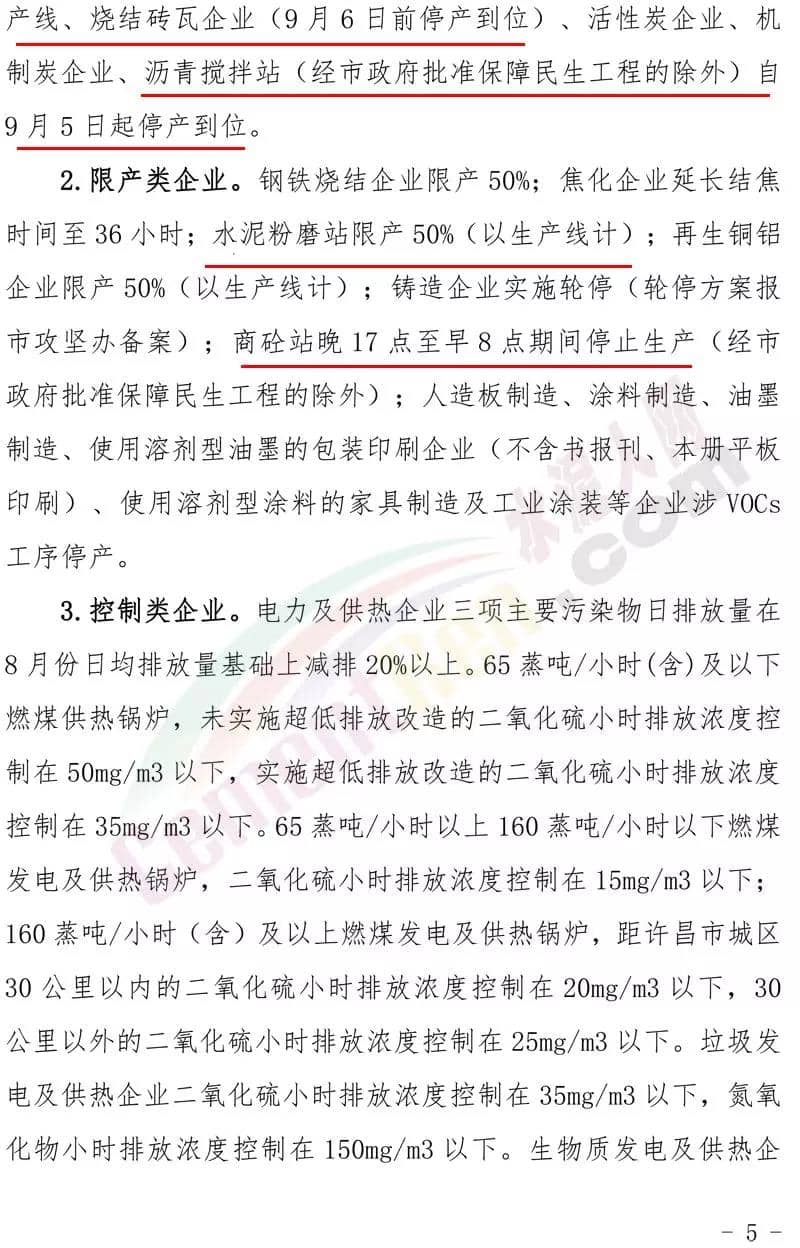 2、限產(chǎn)類企業(yè)中包括水泥粉磨站限產(chǎn)50%(以生產(chǎn)線計);商砼站晚17點至早8點期間停止生產(chǎn)。