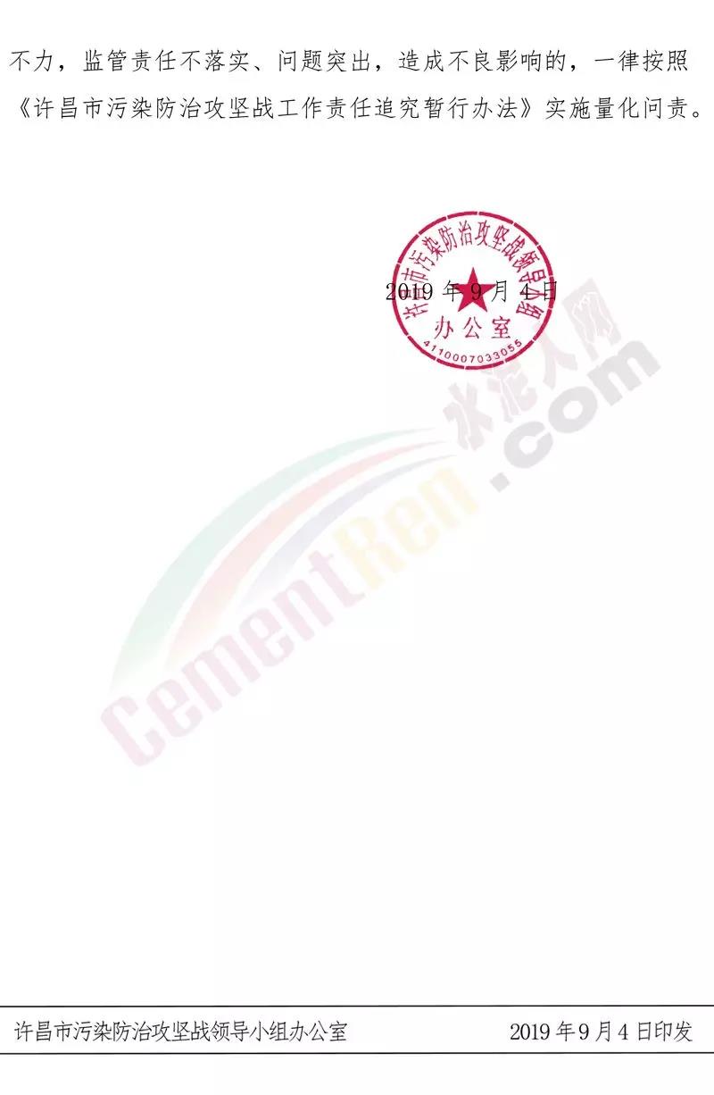 水泥人網(wǎng)消息:日前,許昌市污染防治攻堅戰(zhàn)領(lǐng)導小組辦公室發(fā)布《關(guān)于全面加強9月份全市大氣污染防治攻堅工作的緊急通知》稱按照9月3全省環(huán)境空氣質(zhì)量分析研判視頻會議精神及要求,為全面完成河南省下達的9月份環(huán)境空氣質(zhì)量目標,為今年秋冬季重污染天氣防控贏得空間,確保完成年度目標任務(wù),就全面加強9月份全市大氣污染防治攻堅工作有關(guān)事項中包括強力實施工業(yè)減排,9月5日~16日期間,各縣(市、區(qū))工業(yè)企業(yè)顆粒物、二氧化硫、氮氧化物和揮發(fā)性有機物減排比例分別達到全社會排放總量20%以上。具體招待以下管控要求為: