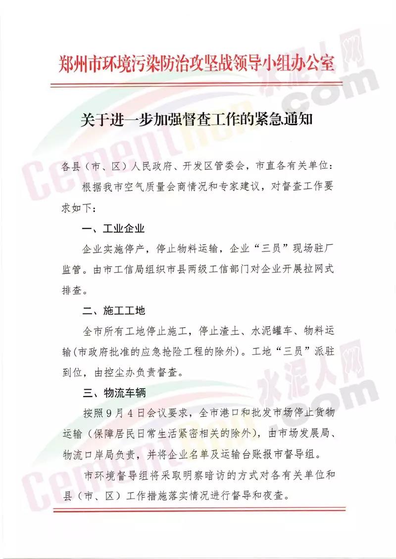 同期,鄭州市環(huán)境污染防治攻堅戰(zhàn)領(lǐng)導小組辦公室發(fā)布了《關(guān)于進一步加強督查工作的緊急通知》通知稱根據(jù)鄭州市空氣質(zhì)量會商情況和專家建議,對督查工作提出要求。