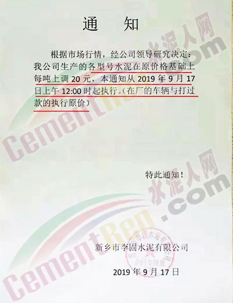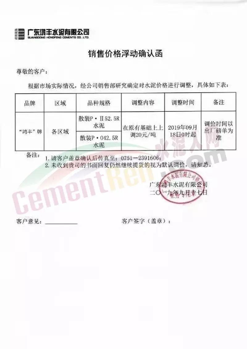 水泥人網(wǎng)消息:日前,崇左紅獅水泥銷售科通知:自今日(9月19日)上午8時(shí)起對(duì)銷往廣東珠三角、湛江區(qū)域區(qū)域所有散裝水泥上調(diào)20元/噸。