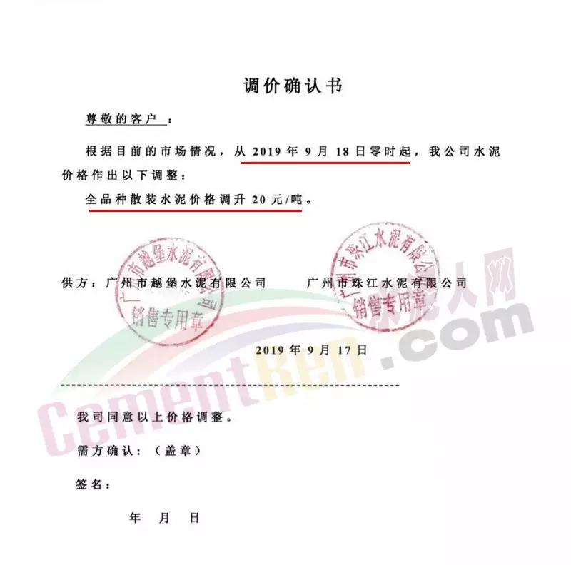 廣州市越堡水泥有限通知自9月18日零時起,公司全品種散裝水泥價格調升20元/噸。