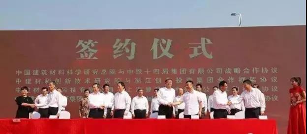 四份合作協(xié)議:中國建筑材料科學(xué)研究總院與中鐵十四局集團有限公司戰(zhàn)略合作協(xié)議;中建材科創(chuàng)新技術(shù)研究院與浙江創(chuàng)業(yè)投資集團合作框架協(xié)議;