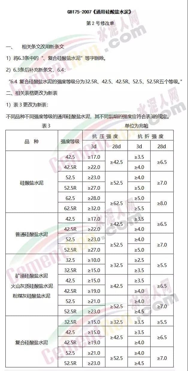 根據(jù)國家市場監(jiān)督管理總局、國家標(biāo)準(zhǔn)化管理委員會標(biāo)準(zhǔn)GB175-2007《硅酸鹽通用水泥》3號修改單規(guī)定,復(fù)合硅酸鹽水泥32.5R強(qiáng)度等級將于2019年10月1日起被取消,同時(shí)將復(fù)合硅酸鹽水泥的強(qiáng)度等級分為42.5、42.5R、52.5、52.5R四個(gè)等級。關(guān)于復(fù)合硅酸鹽水泥和普通水泥的區(qū)別,消費(fèi)者還是疑惑重重。 復(fù)合水泥是混合水泥嗎?“復(fù)合”不可單純的理解為“混合”,不是雜亂無章的將材料拌合在一起,而是按照一定的配比要求酌量添加,分別混合。復(fù)合硅酸鹽水泥質(zhì)量穩(wěn)定,凝結(jié)硬化快,早期強(qiáng)度高,和易性和抗?jié)B性等均優(yōu)于礦渣水泥,干縮性與普通硅酸鹽水泥一致。復(fù)合硅酸鹽水泥因“復(fù)合”二字讓部分用戶誤解,認(rèn)為復(fù)合就是“混雜”。試驗(yàn)研究顯示,其混凝土耐久性優(yōu)于其它品種水泥,適用于中小型構(gòu)件、農(nóng)村民房、現(xiàn)澆結(jié)構(gòu)。 “復(fù)合水泥”有什么樣的特殊性能呢? 復(fù)合水泥的一般物理性能(如細(xì)度、凝結(jié)時(shí)間、強(qiáng)度等)同普通水泥接近,其國家標(biāo)準(zhǔn)中規(guī)定的各種品質(zhì)指標(biāo)幾乎與普通水泥完全一致,主要差別在于復(fù)合水泥中混合材摻量較大。復(fù)合水泥的復(fù)合特性與復(fù)摻混合材料的品種、數(shù)量有關(guān)。就混合材料的品種而言,每一種可用混合材都有自身某一方面的特性,但往往在其它方面有不足之處。在這種情況下,有意識的摻加其它可以彌補(bǔ)彼此間性能不足的混合材料后,會產(chǎn)生復(fù)摻混合材的疊加效應(yīng),使生產(chǎn)出的復(fù)合水泥具有摻單一混合材料時(shí)所不能有的優(yōu)良效果。廣泛適用于民用建筑、工業(yè)工程、預(yù)制構(gòu)件、保溫材料及裝飾裝修工程等。復(fù)合硅酸鹽水泥P·C42.5R與普通硅酸鹽水泥P·O42.5R的區(qū)別?兩者物理性能(如細(xì)度、凝結(jié)時(shí)間、強(qiáng)度等)接近主要區(qū)別在于P·C42.5R混合材摻量較大,水泥水化熱低,在體積混凝土施工中不易開裂。由于混合材性質(zhì)、摻量的不同,通用硅酸鹽水泥會呈現(xiàn)一定的性能差異,并具有明顯的性能優(yōu)點(diǎn)和缺陷。復(fù)合硅酸鹽水泥除了具有礦渣硅酸鹽水泥、火山灰硅酸鹽水泥、粉煤灰硅酸鹽水泥等單一品種混合材水泥所具有的水化熱低、耐蝕性好、韌性好的優(yōu)點(diǎn)外,還能通過混合材料的復(fù)摻優(yōu)化水泥的性能,如改善保水性、降低需水性、減少干燥收縮、適宜的早期和后期強(qiáng)度發(fā)展。復(fù)合硅酸鹽水泥可用于無特殊要求的一般結(jié)構(gòu)工程,適用于地下、水中、大體積等混凝土工程,特別是有環(huán)境水侵蝕的工程,但不宜用于需要早強(qiáng)和受凍融循環(huán)、干濕交替的工程中。