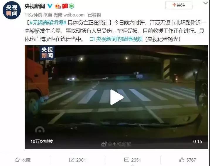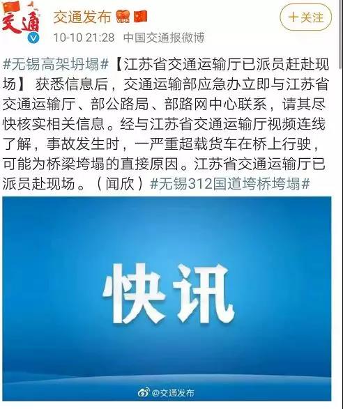 圖片來源:新浪微博@無錫交通廣播晚上8時許,央視新聞稱,目前,救援車輛已到現(xiàn)場。交警在距離事故現(xiàn)場不到2公里處的華莊岸大橋進(jìn)行封路。提醒大家繞行!