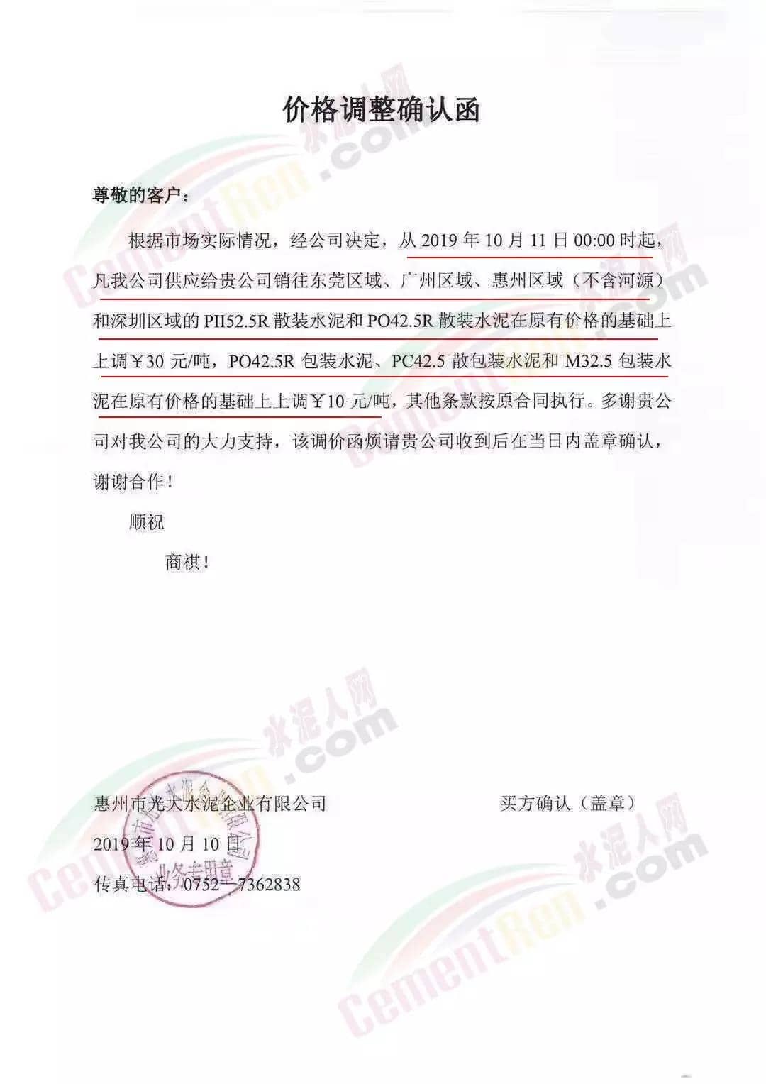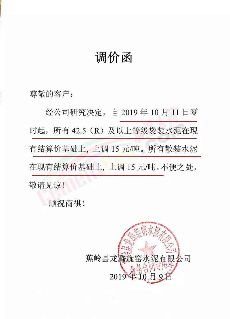 區(qū)域內(nèi)華潤、、中材、塔牌等水泥企業(yè)亦同時上調(diào)了水泥價格,漲價通知如下: