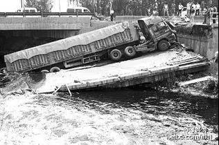 2012年哈爾濱的:裝滿石灰,三打一,估計(jì)400噸,干翻一座新橋(司機(jī)們要不要這么笨,扎堆兒送死...)