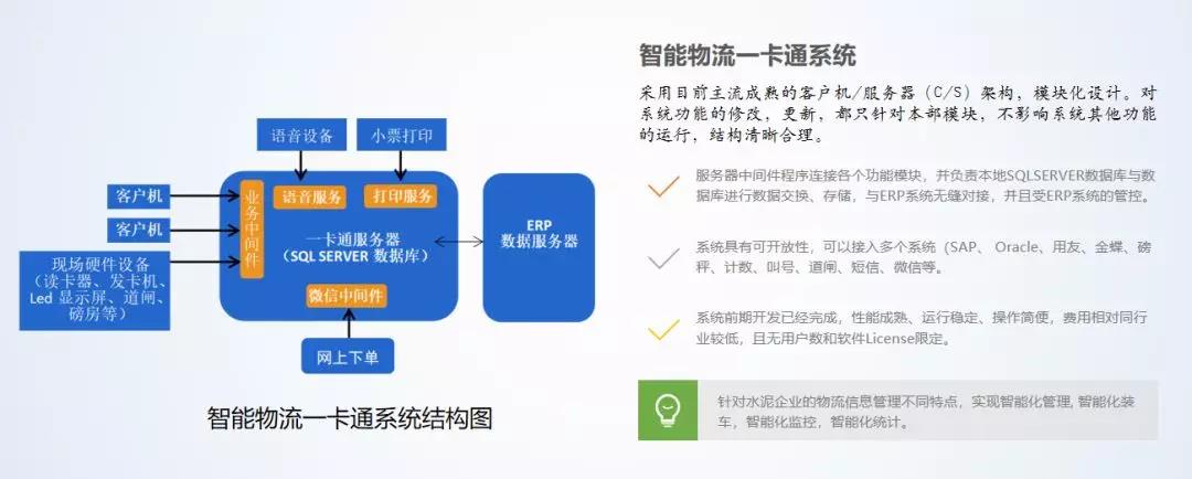 在水泥行業(yè),物流服務(wù)的本質(zhì)是通過(guò)降低物流成本創(chuàng)造“第三利潤(rùn)源泉”,智能物流一卡通系統(tǒng)隨著物流行業(yè)高成本的痛點(diǎn)應(yīng)運(yùn)而生,其本質(zhì)在于降本增效,是水泥工業(yè)智能化發(fā)展的需要,更是企業(yè)應(yīng)對(duì)當(dāng)前市場(chǎng)環(huán)境,加強(qiáng)成本控制能力,提升經(jīng)營(yíng)效益的現(xiàn)實(shí)需求。