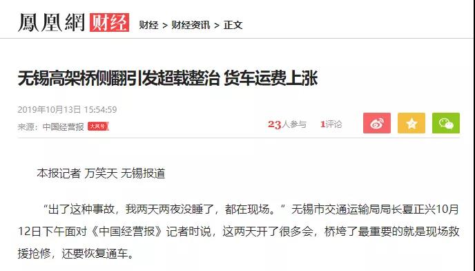 鳳凰網(wǎng):無錫事故發(fā)生后,貨車運(yùn)費(fèi)上漲▼