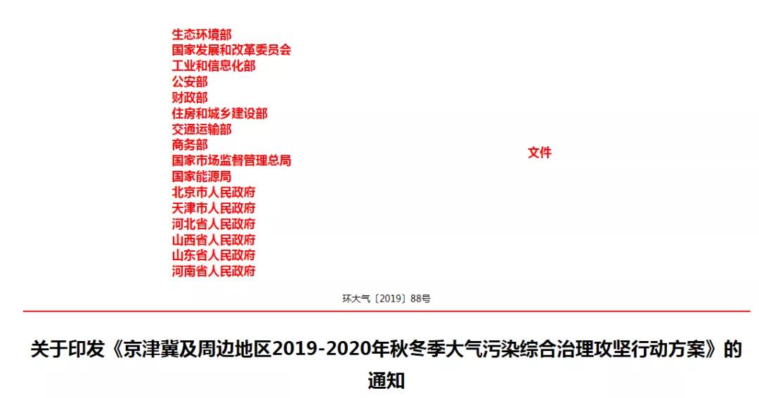 京津冀及周邊地區(qū)2019-2020年秋冬季大氣污染綜合治理攻堅(jiān)行動(dòng)方案