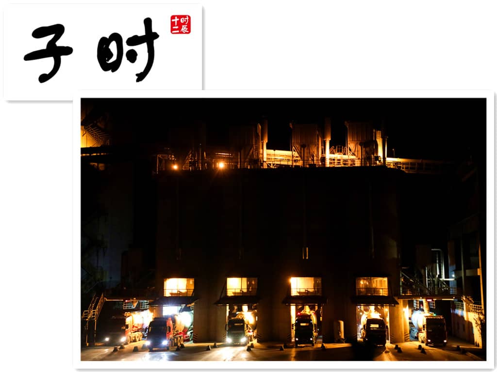 子時(shí)(23:00—1:00)“子時(shí)夜半動(dòng)人愁”。公司發(fā)運(yùn)廣場(chǎng)的散裝區(qū)依然是一副“車(chē)水馬龍”的盛況。