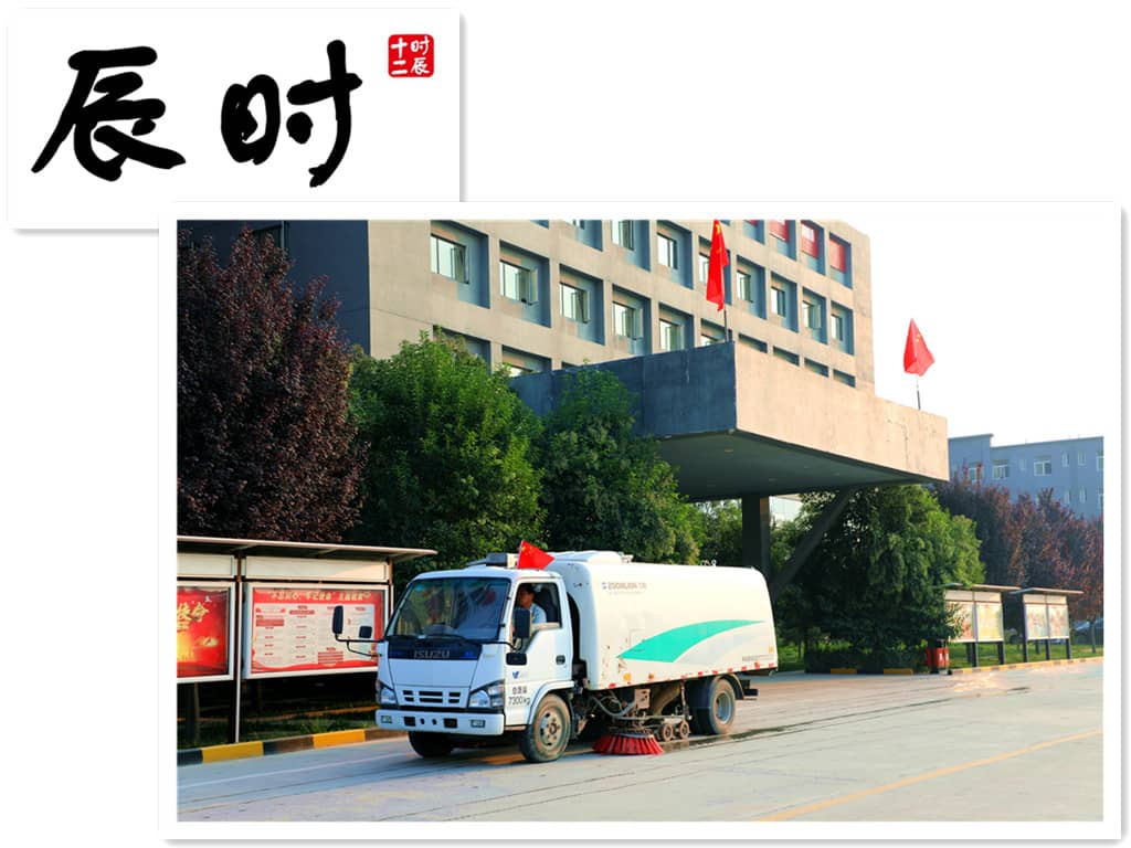 辰時(shí)(7:00—9:00)“少刻辰時(shí)日正高”。迎著朝陽(yáng),灑掃車(chē)正奔忙與廠(chǎng)區(qū)之中,為美好的一天營(yíng)造舒適干凈的環(huán)境。